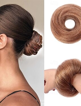 Coque desarrumado para mulheres e meninas, aplique ondulado e cacheado, rosquinha volumosa, penteado elegante e sofisticado.