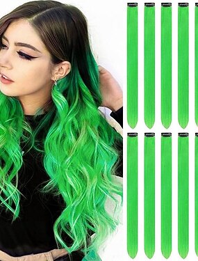 Perucas Verdes 12 PCS Extensões de Cabelo Verde Clip em Mechas Coloridas para Festa para Crianças Meninas Peça de Cabelo Sintético Liso 22 polegadas