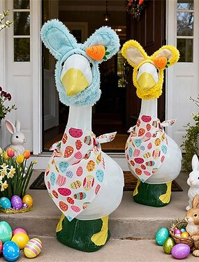 Roupa de coelho da Páscoa para ganso, roupa de coelho da Páscoa para gansos de cimento de 23 polegadas, roupa para gansos de varanda, com chapéu fofo de orelhas de coelho e cachecol colorido.