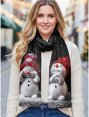 Cachecol de veludo natalino feminino - tecido macio e felpudo com diversos desenhos festivos, perfeito para usar nas festas de fim de ano e para o estilo de inverno.