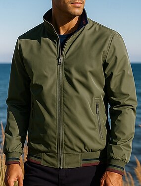 Homens Jaqueta Bomber Jaqueta de Transição Para Noite Bolsos Todas as Estações Tecido Casual Colarinho Clerical Padrão Preto Azul Verde Tropa Cinzento Casaco