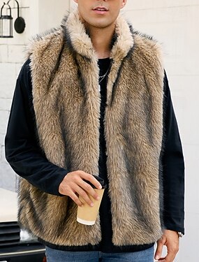 Homens Jaqueta casual Casaco de pele falsa Férias Diário Térmico / Quente Felpudo Outono Inverno Tecido Moda Roupa de rua Lapela Padrão Branco Amarelo Camelo Cinzento Casaco