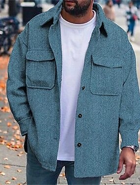 Homens Jaqueta de Veludo Casaco de lã Formal Casa Tático Bolsos Outono Outono & inverno Côr Sólida Ativo Vintage Colarinho de Camisa Padrão Preto cáqui Café Casaco