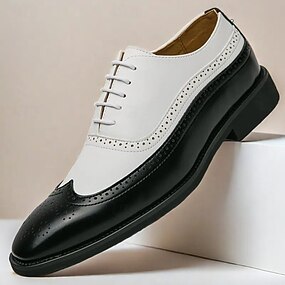 sapatos oxford brogue masculinos clássicos com bico fino – sapatos sociais de dois tons com detalhes perfurados para trajes de negócios e casamentos