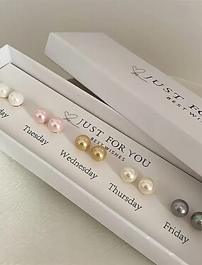Conjunto de caixa de presente com 5 pares de brincos de pérolas falsas, elegantes e luxuosos, brincos para combinar diariamente de segunda a sexta-feira