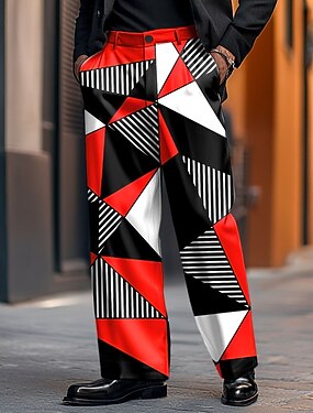 Homens Calças Social Geométrica Bloco de cor Comprimento total Feriado Streetwear Presentes para o Dia dos Pais Casual Ajuste Largo Vermelho Azul Marinha Micro-Elástica