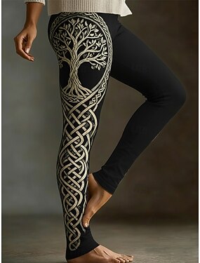 Mulheres Viking Leggings Leggings aconchegantes Férias Vintage Estilo Étnico Comprimento total Cintura Alta Gráfico Árvore Estampado Confortável Com Stretch Casual Diário Férias Preto Primavera Outono