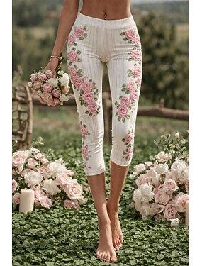 Mulheres Calças Capri chinês Leggings Férias Vintage Roupa de rua Comprimento da panturrilha Cintura Alta Floral Gráfico Estampado Imprimir Conforto Macio Confortável Com Stretch Diário Ao ar livre