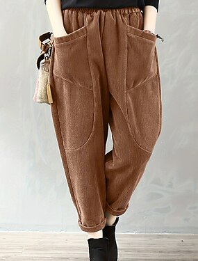 Mulheres Perna larga Calças de Veludo Calças Roupa de rua Casual Comprimento total Natural Tecido Bolsos Cintura elástica Confortável Rua Feriado Roupa Diária Castanho Avermelhado Vermelho Escuro