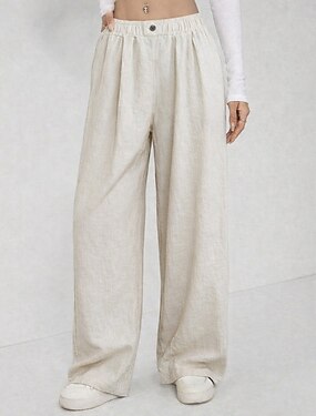 Mulheres Linho de algodão sintético Calças Calça verão Calças largas Férias Moda Básico Comprimento total Cintura Alta Tecido Com Cordão Perna larga Conforto Exterior Com Stretch Diário Praia Feriado