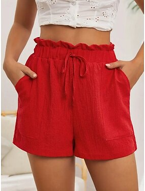 Mulheres chinês Calção Shorts de verão Shorts de praia Férias Moda Roupa de rua Curto Cintura Alta Tecido Cintura elástica Conforto Respirabilidade Confortável Sem Elasticidade Diário Férias Rua