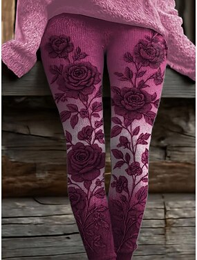 Mulheres Leggings Loungewear Férias Vintage Moda Comprimento total Cintura Alta Floral Gráfico Estampado Térmico / Quente Macio Respirável Com Stretch Diário Ao ar livre Férias Violeta Rosa claro