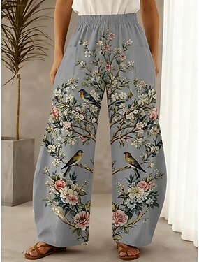 Mulheres Perna larga Calças Férias Boêmio Casual Comprimento total Cintura Alta Floral Com Cordão Bolsos Cintura elástica Confortável Conforto Respirabilidade Micro-Elástica Casual Diário Férias