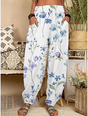 Mulheres Atrevido Calças Casual Boho Comprimento total Natural Flor Bolsos Cintura elástica Estampado Confortável Exterior Feriado Casual / Diário Final de semana Magenta Branco Azul Verde Verão