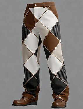Homens Bloco de cor Retalhos Losango Calças Social Calças de Terno Cintura Média Casual Ao ar livre Dia a Dia Calça social com corte relaxado e frente lisa com bolsos laterais Primavera Outono