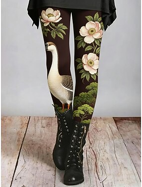 Mulheres Leggings Leggings aconchegantes Férias Vintage Casual Comprimento total Cintura Alta Floral Gráfico Estampado Conforto Confortável Elasticidade Alta Casual Diário Férias Castanho Escuro