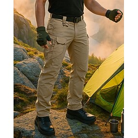 Homens Calças Cargo Calças Táticas Tático Calças de Trilha Bolso Com Zíper Bolso multi Tecido Secagem Rápida Leve Comprimento total Ao ar livre Acampar e Caminhar Calças Tático Camuflagem Preto