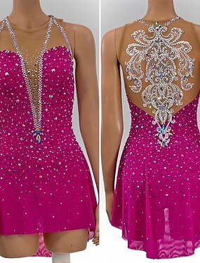 Vestidos para Patinação Artística Mulheres Patinação no Gelo Vestidos Rosa escuro Patchwork Barra Assimétrica Elastano Com Transparência Elasticidade Alta Treino Competição Roupa para Patinação