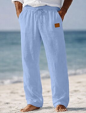 Homens Calças de linho Calças Calça verão Calças largas Calças de praia Com Cordão Cintura elástica Perna reta Tecido Conforto Respirável Comprimento total Ao ar livre Praia Feriado Férias Moda Preto