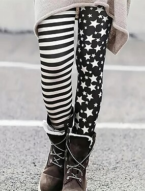 Mulheres Calças Leggings Leggings aconchegantes Roupa de rua Casual Comprimento total Cintura Alta Estrela Listrado Cintura elástica Imprimir Respirabilidade Confortável Com Stretch Férias Rua Roupa