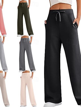 Mulheres chinês Reto Férias Roupa de rua Casual Comprimento total Cintura Média Tecido Com Cordão Bolsos Conforto Micro-Elástica Diário Ao ar livre Férias Cinzento Claro Cinza escuro Amêndoa Preto