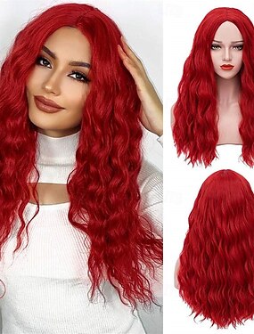 Peruca de Carnaval 2026 Vermelho Preta Azul Encaracolado Ondulado Longo Peruca sintética para festivais Mardi Gras Parada Cabelo para fantasia de cosplay para Feminino