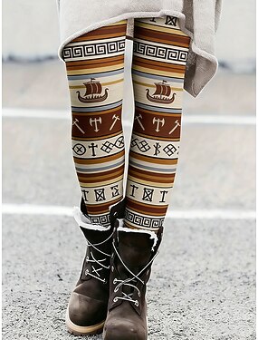 Mulheres Viking Calças Leggings Leggings aconchegantes Roupa de rua Casual Comprimento total Cintura Alta Estampas Abstratas Cintura elástica Imprimir Respirabilidade Confortável Com Stretch Férias