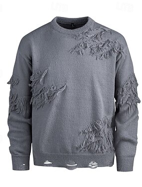 Homens Pulôver suéter Suéter de malha Estriado Tricotar Tops regulares Tricotado rasgado Tecido Gola Redonda Moda Básico Férias Roupa Diária Roupa Outono Inverno Preto cáqui M L XL