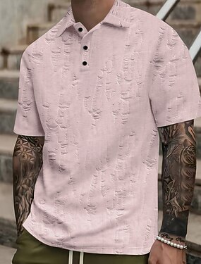 Homens Pólo Camisas Polo Casual Rua Lapela Manga Curta Básico Moderno Tecido Botões rasgado Verão Primavera Normal Preto Branco Amarelo Rosa cáqui Cinzento Pólo