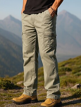 Calças de carga ripstop masculinas calças táticas de ajuste relaxado retas para caminhadas ao ar livre calça de trabalho longa e leve verde exército
