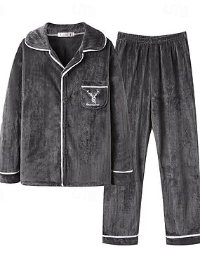 Homens Roupa de Dormir Conjunto de Pijama Top e calça de pijama 1conjunto Cada Moda à moda Clássico Casa Diário De Cama Sherpa Poliéster Térmico / Quente Conforto Macio Lapela Manga Longa Calça