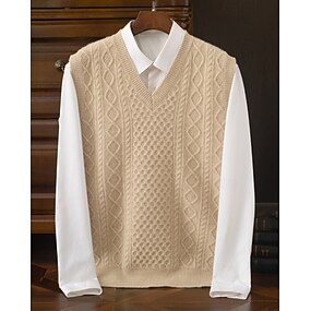 Homens Colete de moletom Vestido Suéter Pulôver suéter Colete Suéter de malha Estriado Tricotar Tops regulares Tricotado Tecido Decote V Moda Roupa de rua O negócio Férias Roupa Sem Mangas Outono