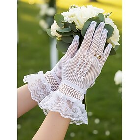 Luvas femininas elegantes em poliéster com renda, luvas formais pretas e brancas para casamentos, jantares e óperas, acessórios sofisticados para vestidos de noiva em ocasiões especiais.
