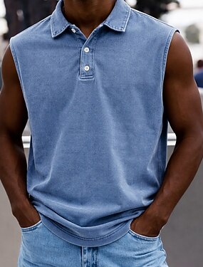 Homens Camisas Polo Camisa 100% algodão com lavagem ácida Casual Feriado Lapela Manga Curta Moda Básico Tecido Vintage Angustiado Verão Primavera Todas as Estações Normal Preto Verde Claro Rosa Azul