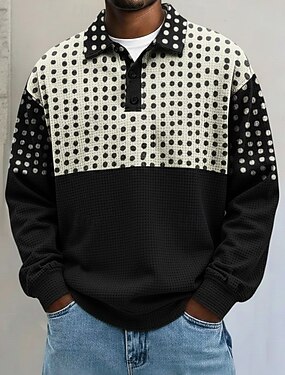 Homens Geométrico Bolinhas Camisas Polo Waffle Textura Manga Longa Camisas polo Lapela Roupa de Esporte Casual Escola Roupa Esportiva Roupa Diária Impressão 3D Primavera Outono Inverno Preto Amarelo