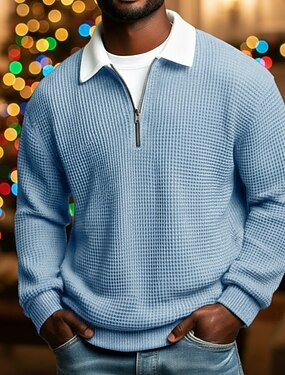 Homens Camisas Polo Waffle Pólo Casual Formal Colarinho com faixas Manga Longa Moda Côr Sólida Textura Bloco de cor Botões Primavera Outono Primavera & Outono Normal Azul Marinha Cinzento Claro Verde
