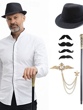 Loucos anos 20 Anos 20 Retro Vintage Roupa Camisa Conjunto de acessórios Manga Comprida Cavalheiro Mafioso Fantasia Homens Carnaval Mascarilha Coquetel Festa temática Adulto Camisa Mais Acessórios
