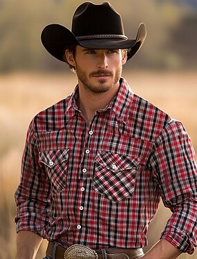 Homens Geométrica Padrão em Grelha / Xadrez camisa ocidental camisa de botão Camisa de caubói Manga Longa Ocidental Vintage retrô Ao ar livre Casual Primavera Outono Aberto para a Lateral camisas de