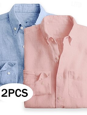 Homens Camisa Social Camisa de linho camisa de verão camisa de botão Camisa casual Tecido Férias Diário Branco + Pink Branco + Verde Verde + rosa Rosa + azul Manga Longa Lapela Verão Primavera Roupa