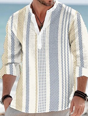 Homens Geométrica Listrado Camisa Social camisa de botão Camisa Henley Manga Longa Moda Casual Férias Dia a Dia Verão Primavera Colarinho Mandarim Colarinho Clerical Impressão 3D Camisa tipo linho
