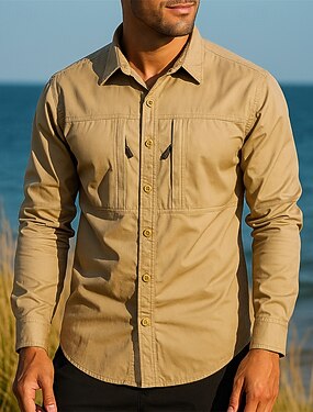 Homens Camisa de Trilha Camisa impermeável Manga Longa Aberto para a Lateral Camisa Blusas Ao ar livre Leve Respirável Primavera Outono Algodão Preto Verde Tropa Cáqui Caça Pesca Campismo / Escursão
