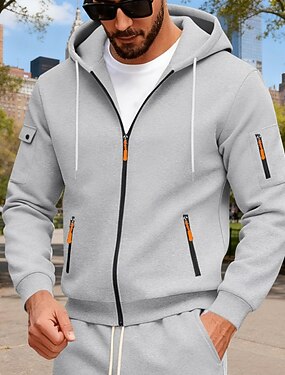 Homens Bloco de cor Abstrato Estampas Abstratas Moletom Moletons Roupa de rua Designer Casual Manga Longa Com Capuz Desportos e Ar livre Diário Esportes Feriado Laranja Zíper Imprimir Primavera