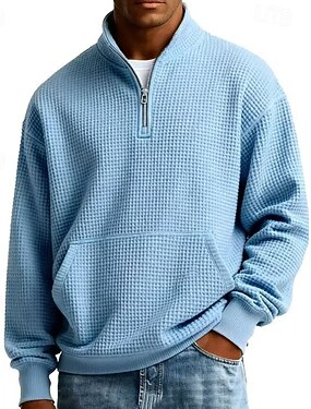 Homens Moletom Moletom Waffle Estacionar Moletom com zíper Preto Branco Verde Claro Azul Marinha Roxo Claro Meio Zíper Tecido Casual Diário Desportos e Ar livre Roupa de rua Básico Casual Outono