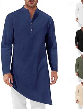 Homens Loungewear Camisola Camisa de noite Tecido à moda Conforto Casa Diário Algodão Respirável Colarinho Chinês Manga Longa Primavera Outono Preto Branco