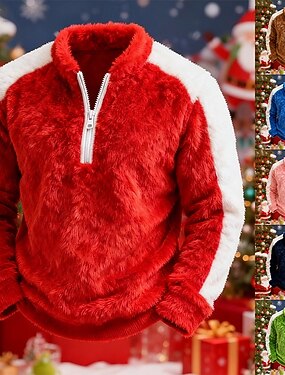 Homens Moletom Moletom de lã Moletom com zíper Preto Rosa Vermelho Azul Marron Colarinho Clerical Tecido Patchwork Bloco de cor Desportos e Ar livre Casual Diário Natal Roupa de rua Legal Inverno