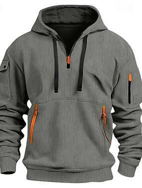 Homens Moletom Moletom com zíper Quarter Zipper Hoodie Preto Verde Tropa Azul Marinha Cáqui Cinza Claro Com Capuz Tecido Bolsos Diário Desportos e Ar livre Feriado Roupa de rua Casual Outono Inverno