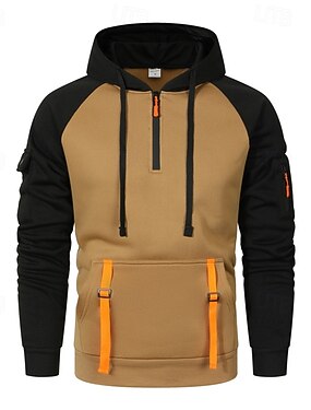 Homens Moletom Quarter Zipper Hoodie Moletom de lã Moletom Tático Preto Cáqui Cinzento Escuro Com Capuz Tecido Patchwork Zíper Bloco de cor Desportos e Ar livre Casual Diário Roupa de rua Legal Roupa