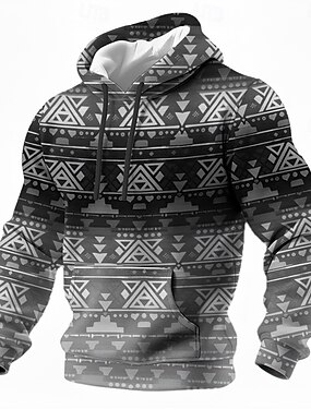 Homens asteca Moletom Étnico Vintage retrô Manga Longa Com Capuz Ao ar livre Montanhismo Caça Verde Cinzento Com Cordão Outono Inverno Designer S M L XL XXL XXXL
