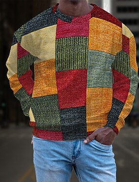 Homens Geométrica 3D impressão 3D Moletom Casual Manga Longa Gola Redonda Férias Festa Presente Azul Verde Crewneck Todas as Estações Designer S M L XL XXL XXXL