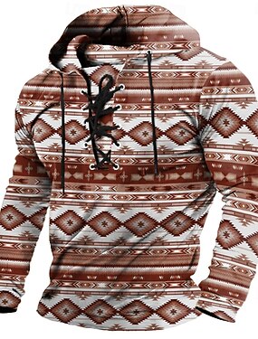 Homens Tribal Moletom Étnico Vaqueiro Manga Longa Gola Redonda Casa Streetwear Azul Marron Com Cordão Outono Inverno Designer S M L XL XXL XXXL